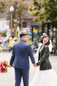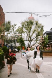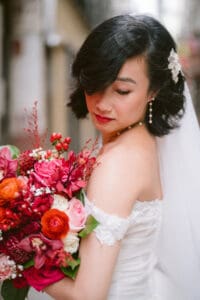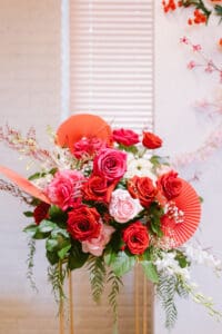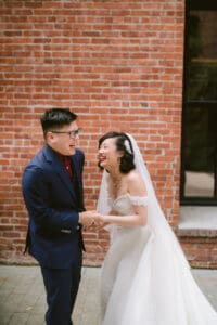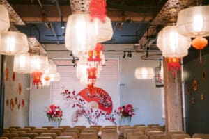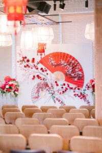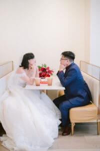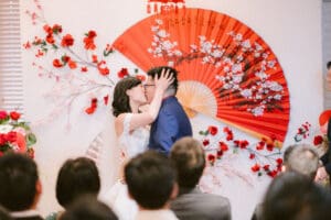 The celebration took place at the Palette Tea House – one of my absolute favorite modern Chinese restaurants and a frequent date spot for my husband and I. The ceremony was held in their planning dining room where the white walls were adorned with paper fans and a backdrop by Bing’s Design. Guests then moved to the enclosed patio for cocktail hour, basking in Bay views that Ghirardelli Square offers.