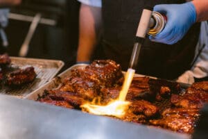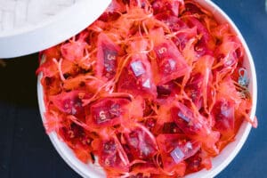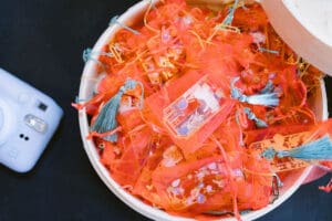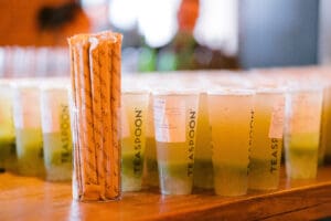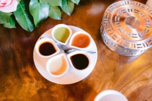 After cocktail hour, guests moved into the main dining room where a multi-course family style dinner began – along with boba from the couple’s favorite shop, Teaspoon.